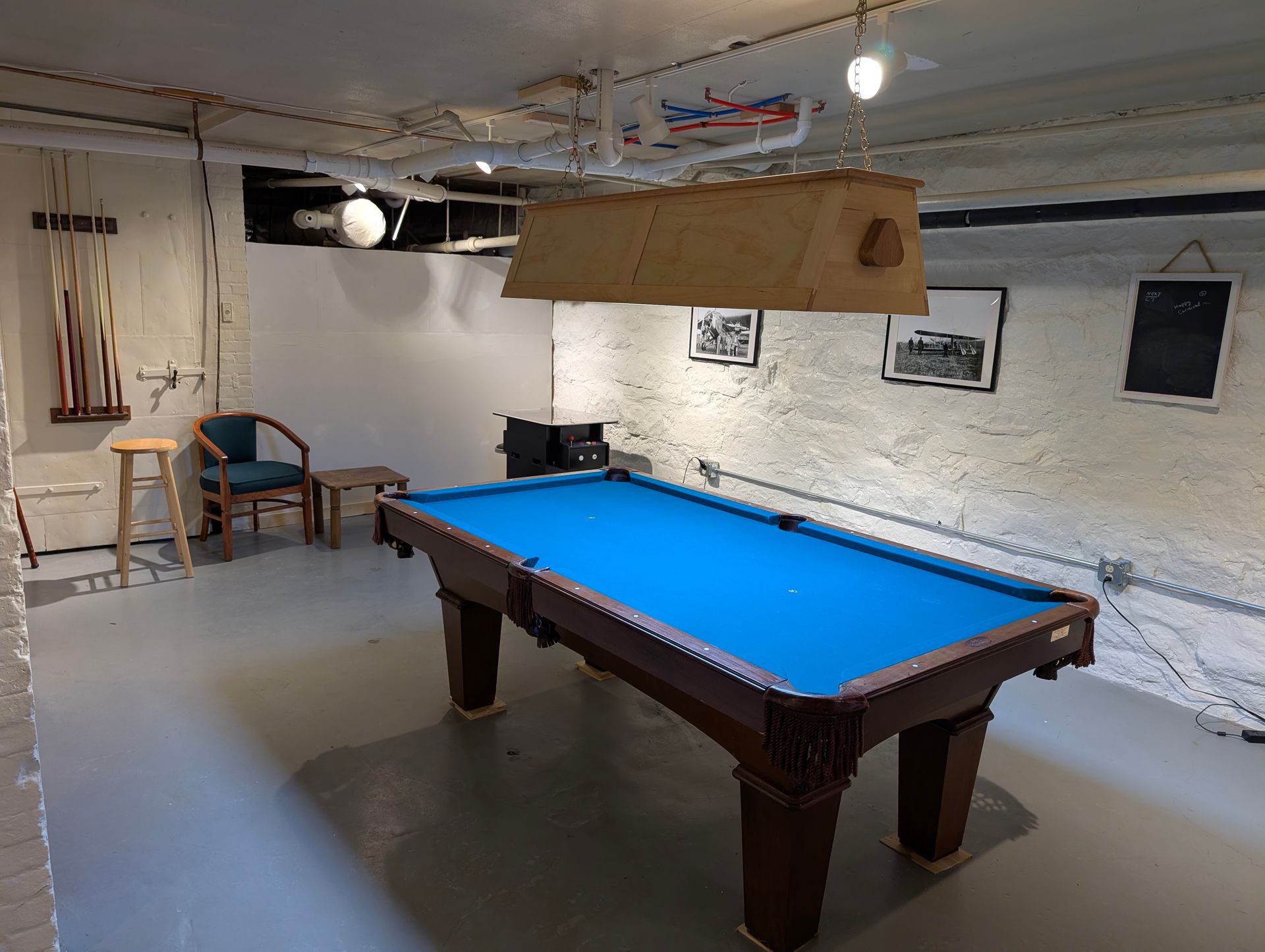 Head down to the Prescott House ADK basement and experience SLK's FBO - our recreation room themed in homage to the history of aviation in the Adirondacks. (Why SLK's FBO? SLK , or SLICK, is the nickname for Adirondack Regional Airport, which serves the North Country. FBO stands for "fixed base operations"—the business set up to provide support and a place to rest for incoming pilots. In our case, it stands for "Fixed Basement Operations" and offers a place for guests to relax, watch game, play some pinball, or use the full kitchen.